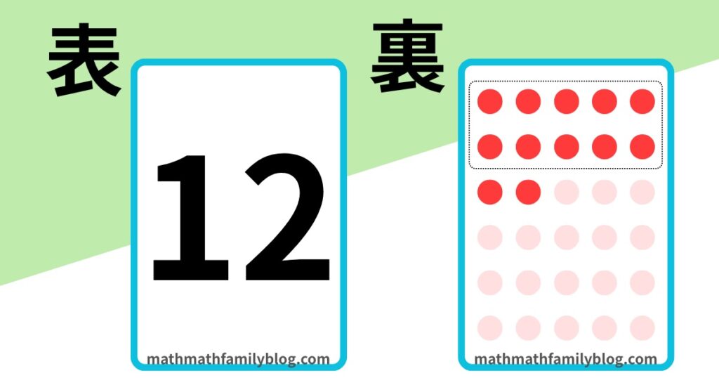 この製品は今回紹介したカードのように、表に数字、裏にはその数に対応した個数分●が書かれてあります。
