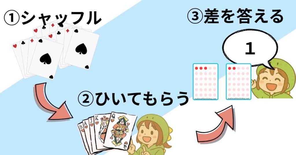 ③お互いにひいたカードの◯の個数の差となる数字を見つける。