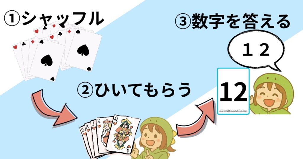 カードに書かれてある数字をみて、その数字の読み方を答えるゲーム。