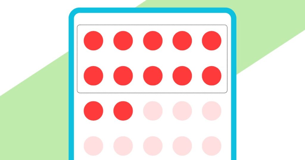 カードの◯は10個のかたまりごとに破線で囲んでいます。