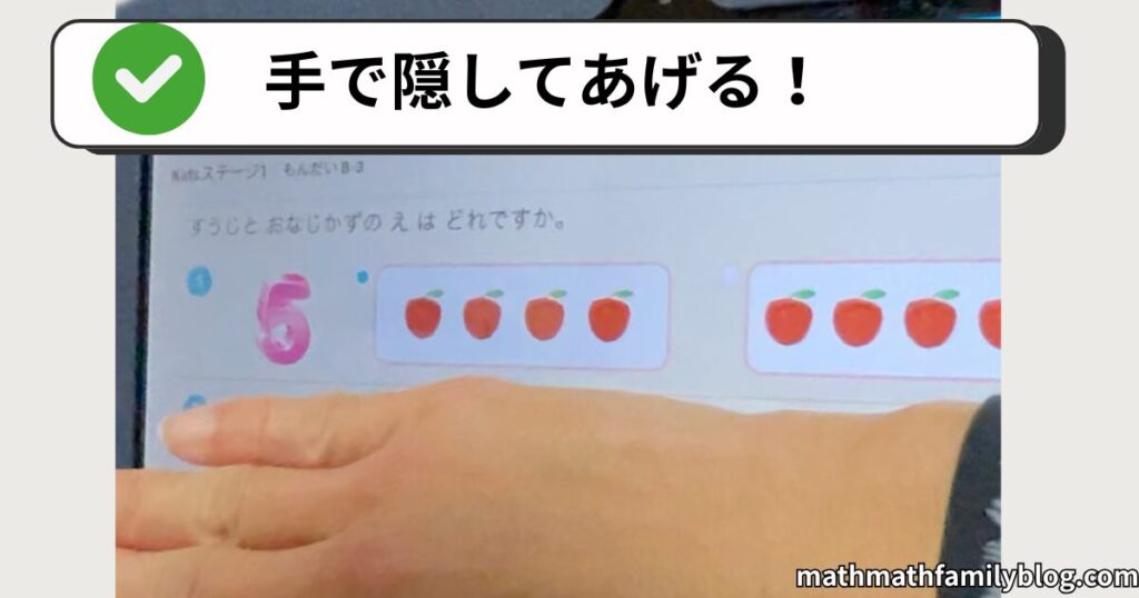 我が家の子どもちゃんは、丁寧に数えて、答えとして正しいものに◯をつけてます。