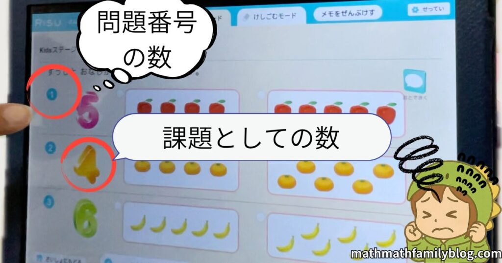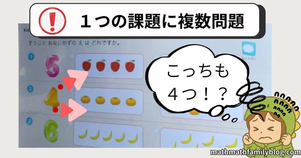”①の問題のりんご4個”と”②の問題のみかん4個”をみて混乱