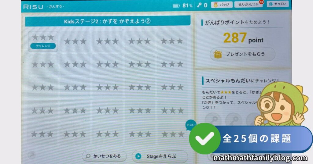ステージ2の大枠はステージ1とは変わらず、全部で25個の課題が用意されています!