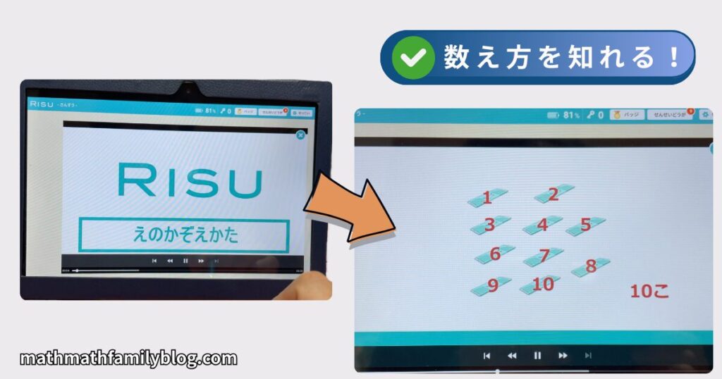 でも”RISUきっず”では、いろんな先生が代わるがわる”数え方”などを丁寧に教えてくれます。