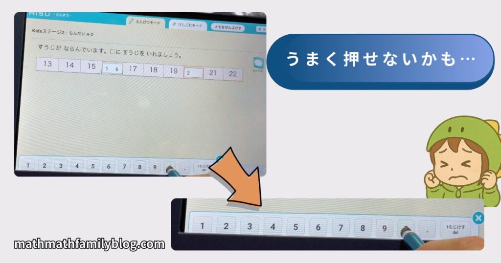 ゲーム性が強い学びにしたい、数字などを書く練習もしたい場合は向かない