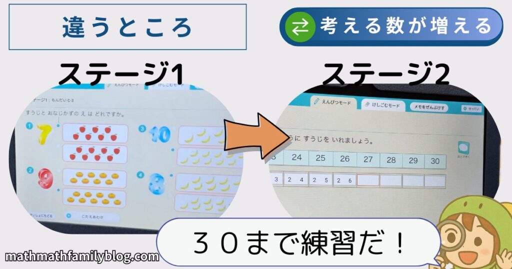 実際に我が家の子どもちゃんが挑戦したステージ1についてや、