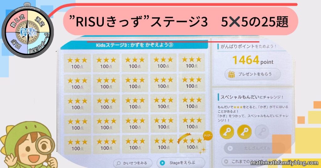 ステージ3の50%を占める”数の順序”に関する課題は、全て難なくクリアしました!