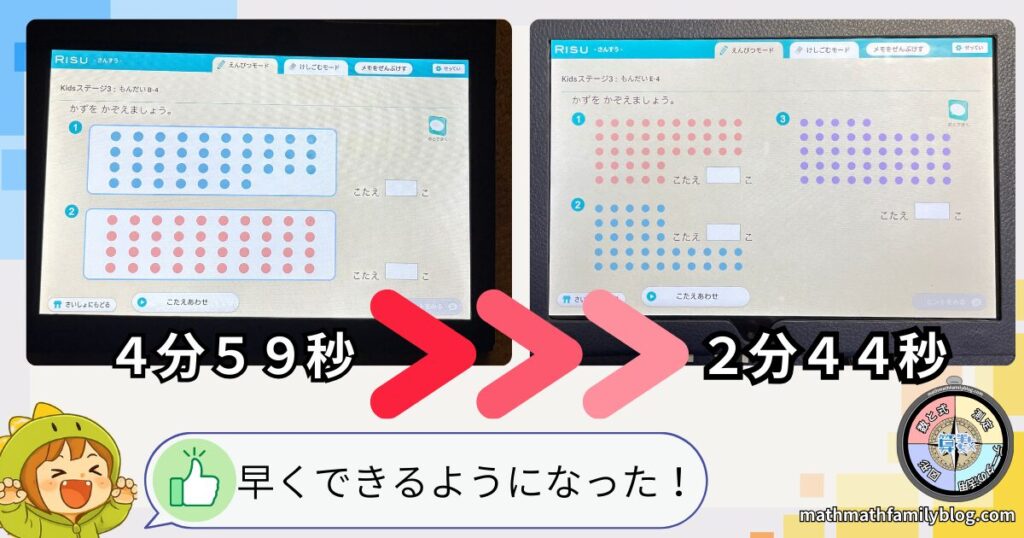 振り返ってみてみると、我が家の子どもちゃんの数える速さが早くなったり、